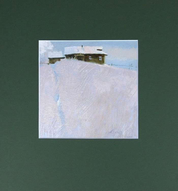 This lovely piece is freely drawn, of a sketch type, very light and cute. Amazing colours convey the tenderness of a winter day.